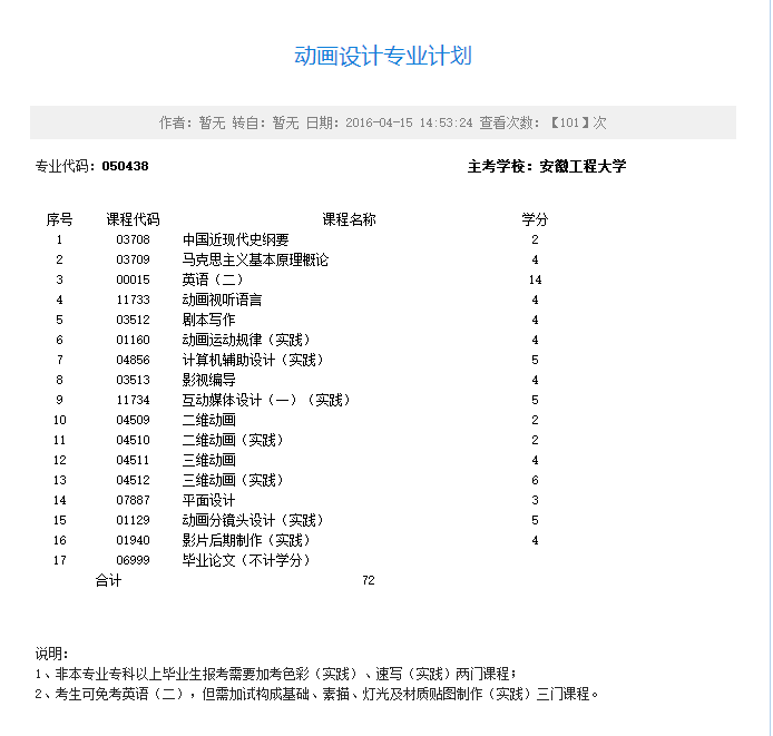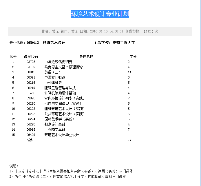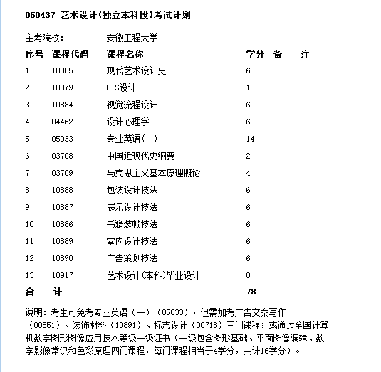050436 艺术设计(专科)考试计划